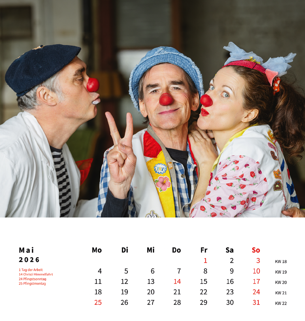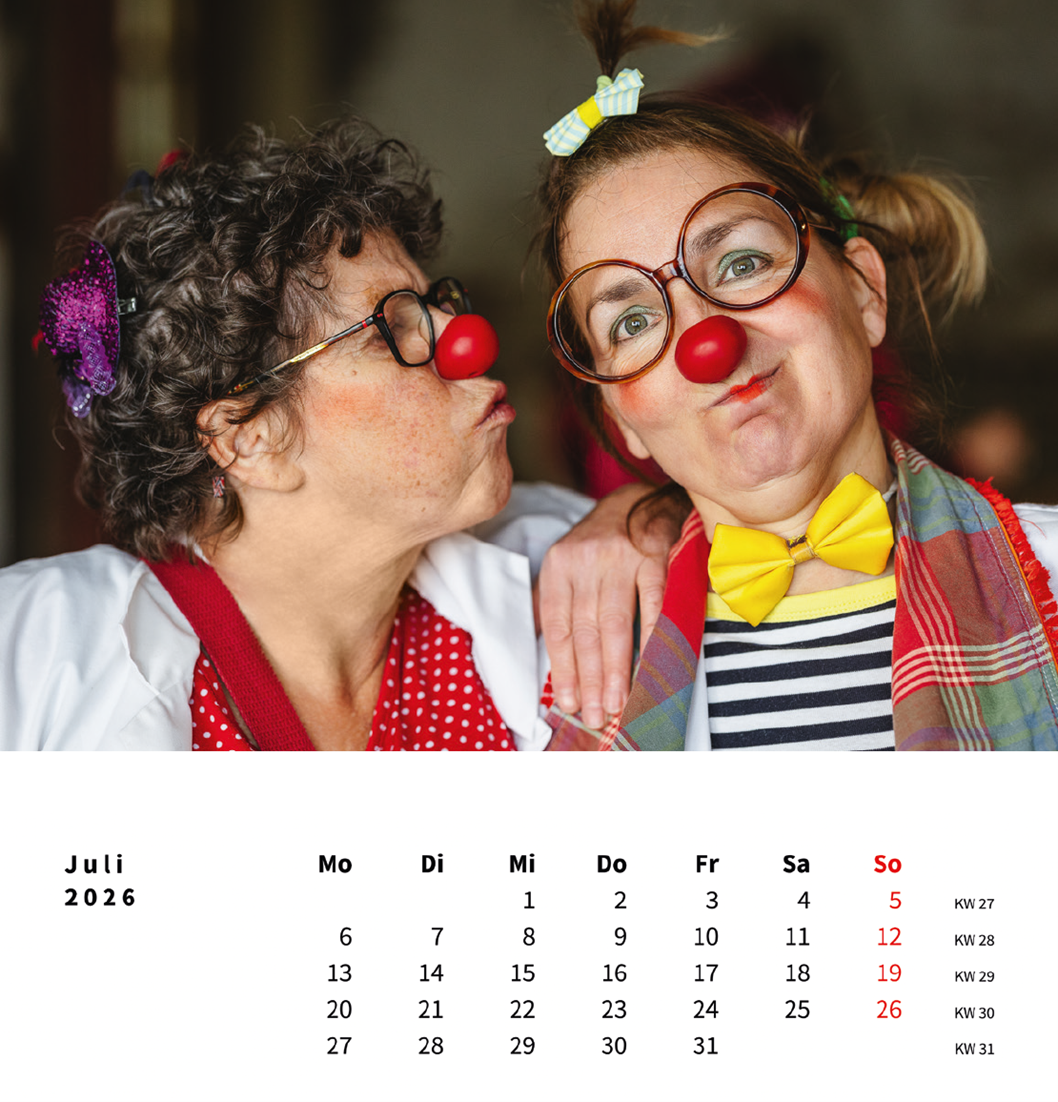 Clowndoktoren für alle! Auch wenn Sie "nur" an der Wand hängen oder auf dem Schreibtisch stehen. Für 2026 haben wir wieder unsere besonderen Humorkalender für Sie zusammengestellt.